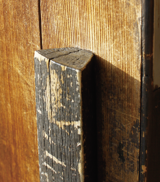 玄関の引き戸の取手は、木を台形に切り、手が引っ掛けやすい