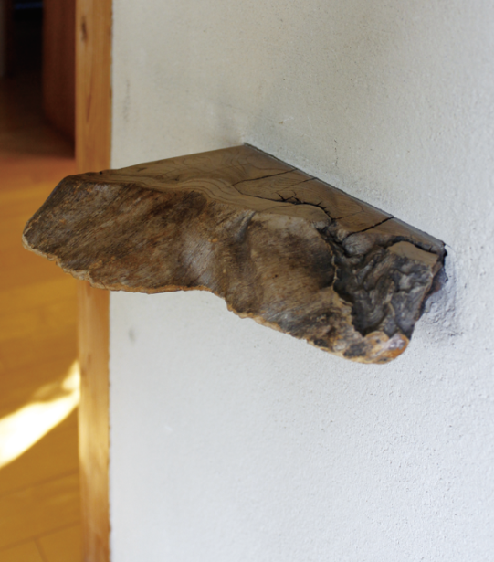 ありのままのケヤキを使った、玄関に備え付けられた手すり